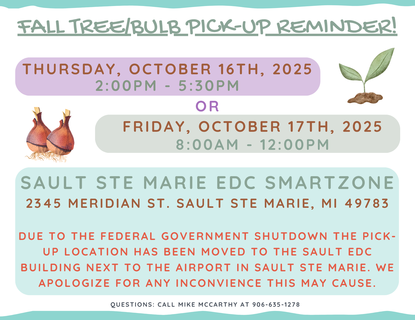 *Eckerman Pick-up: Oct. 17th: 2:00pm - 3:00pm